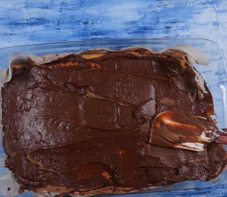 3. Pour half of this mixture over top of the graham crackers. Smooth it out and place more graham crackers on top.