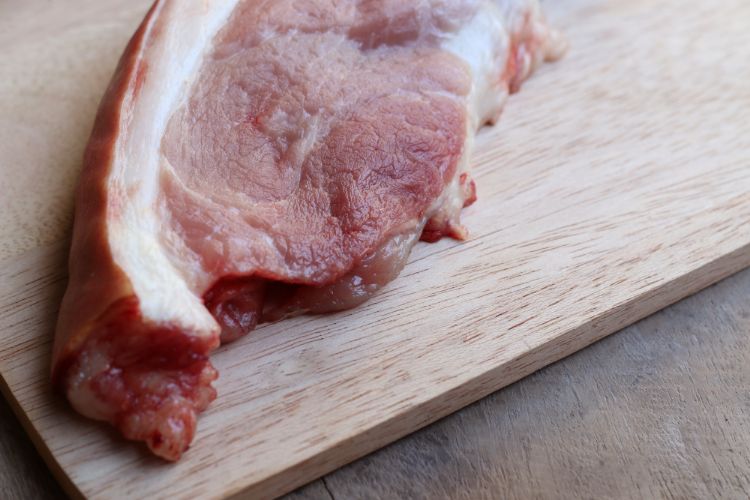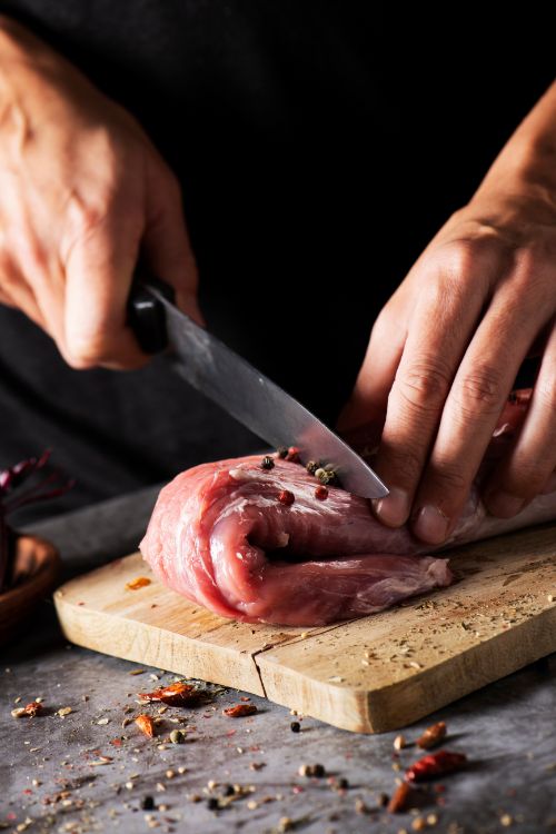 The grain of the meat refers to the small lines you can see running throughout it, and you can use that as a guide for getting super-tender pork that's in no way chewy. Simply cut across the grain, not with it. This means cutting in the opposite direction the grain is going.