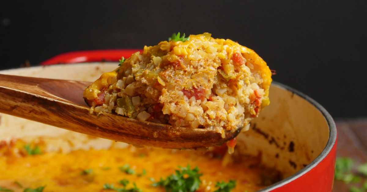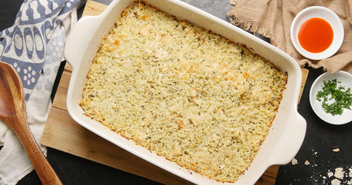 Looking for a low-carb Italian casserole? This one fits the bill on all levels. The unique flavors of pesto, ricotta, and both mozzarella and Parmesan cheese folded with tender chicken breasts and cauliflower rice makes this dish so special it could be the entree at your next dinner party. Get the recipe here.