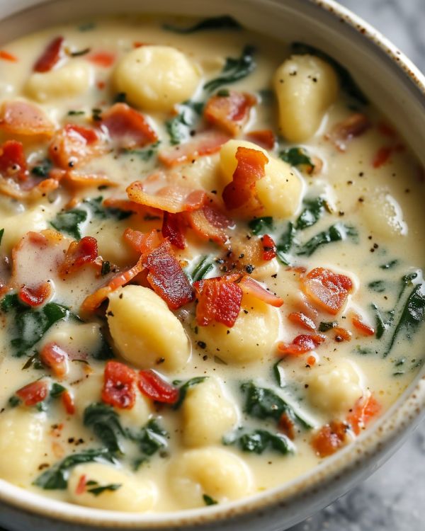 Well, darlings, gather 'round the stove for a hearty tale and an even heartier soup. I've got something special to share with you today – a recipe that's as comforting as a hug from grandma on a brisk autumn day. This Chicken Bacon Gnocchi Soup is a dish steeped in the tradition of heartwarming Midwestern meals but with a little twist of Italian charm with those tender gnocchi that'll make your heart sing. It's the sort of meal you whip up when the leaves start to turn, or when you've got a table full of loved ones to feed. It's a reminder of simpler times, combining the smoky goodness of bacon, the wholesomeness of chicken, and those delightful little dumplings that bring it all together.