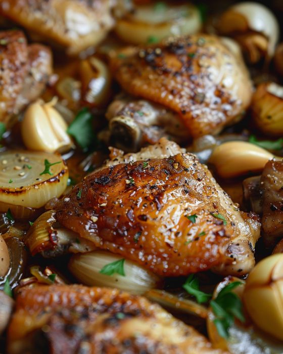 Slow Cooker 30 Clove Garlic Chicken is a recipe that exemplifies the magic that can occur when patience meets simplicity in culinary arts. Originating from the traditional French dish, Chicken with Forty Cloves of Garlic, this dish has been adapted for the modern kitchen. The original dish is believed to have roots in Provence, where the mellowing of garlic through cooking is celebrated. In this slow cooker version, 30 cloves might seem excessive, yet when allowed to simmer slowly, these pungent bulbs transform into tender, sweet, almost nutty morsels that enrich the chicken with deep, aromatic flavors. This dish is perfect for those looking to impress guests with a rustic yet sophisticated meal, or simply for anyone wanting to enjoy a cozy evening at home with a hearty, comforting dish that's easy to prepare.