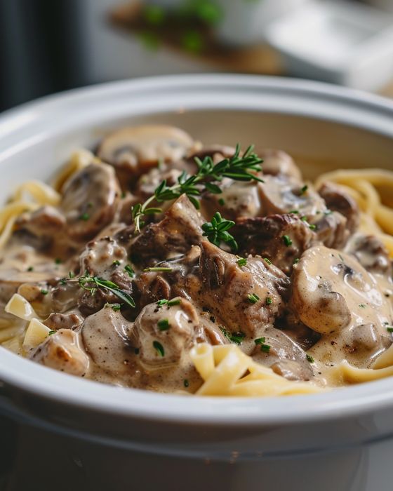 Slow Cooker Beef and Mushroom Stroganoff