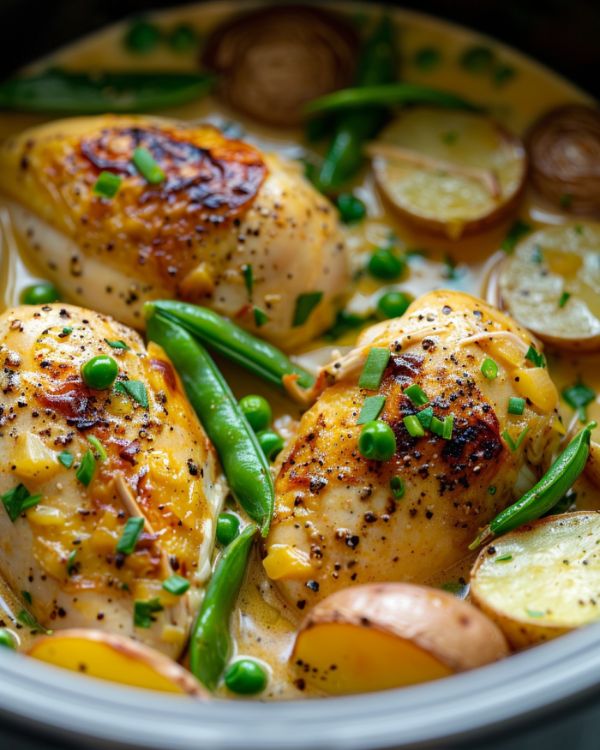 Slow Cooker Creamy French Mustard Chicken with Spring Vegetables is a comforting and flavorful dish that brings a touch of French cuisine to your dinner table. The slow cooker does all the hard work, making it a perfect recipe for busy families or anyone who wants to prepare a delicious meal with minimal effort. The rich, creamy mustard sauce pairs beautifully with the freshness of spring vegetables, creating a dish that's both hearty and refreshing. Plus, it’s a surefire way to impress your family or friends at your next dinner gathering.