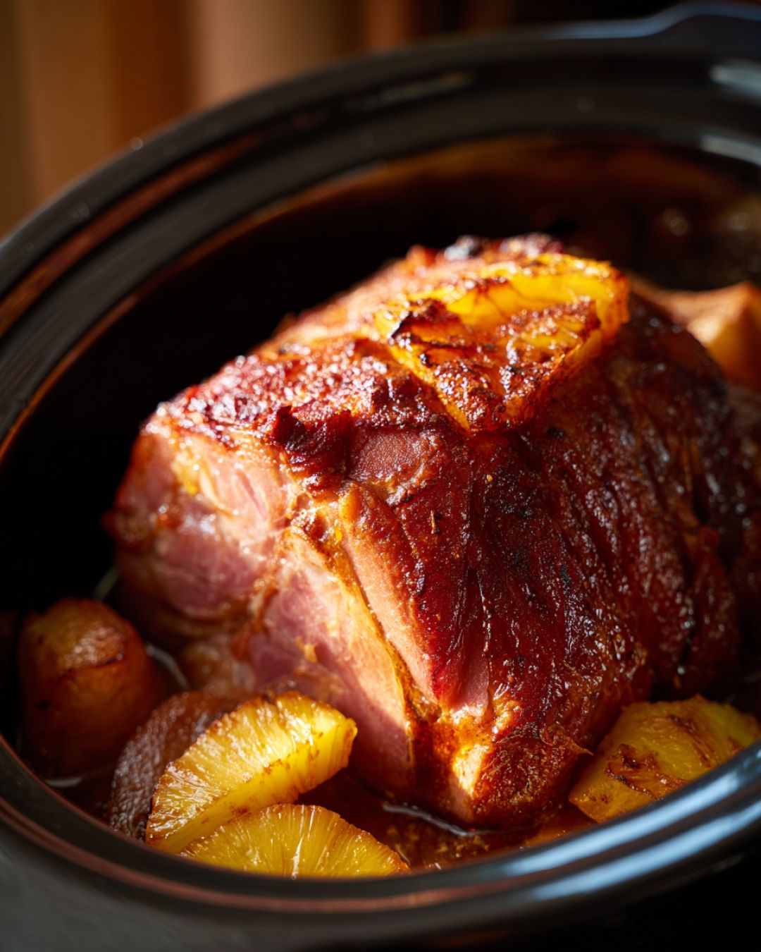 This slow cooker brown sugar pineapple ham is one of those set-it-and-forget-it recipes that delivers a holiday-level payoff with weeknight effort. The combination of salty, smoky ham and caramelized pineapple has roots in mid-20th-century American cooking, when canned pineapple and brown sugar–glazed hams became iconic centerpieces at family gatherings and Sunday dinners. Cooking the ham low and slow in a crockpot lets the fruit juices and sugar seep into the meat, creating a glossy, sticky glaze and incredibly tender slices. It’s a practical choice for busy days, potlucks, or holidays when the oven is already full—yet it still feels festive and a little nostalgic.