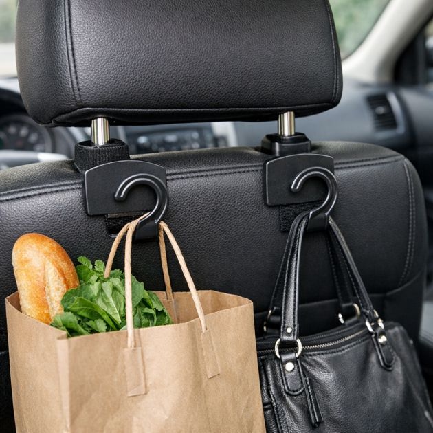 Use these hooks to hang bags, grocery totes, or other lightweight items, keeping your car organized and clutter-free. This simple solution is especially useful for preventing items from rolling around in the trunk or for keeping essentials within easy reach during trips.