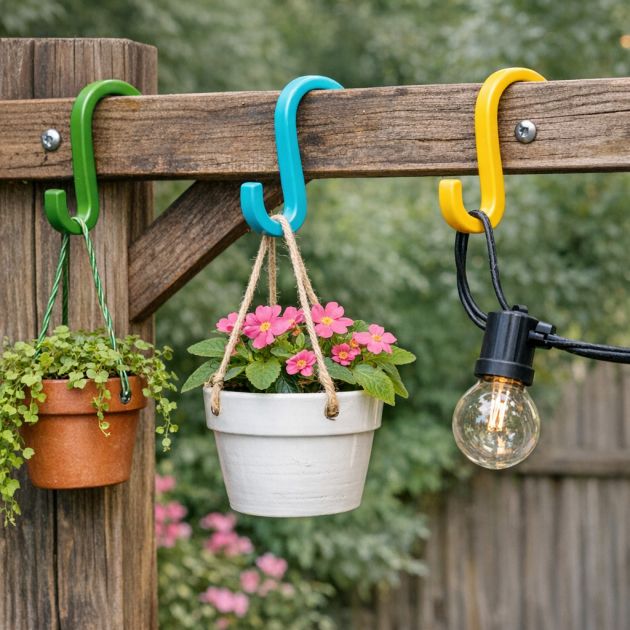 To enhance their appearance, you can spray paint these hooks in colors that match your garden or patio decor. Attach them to existing trellises or beams using screws or nails, or hang them over existing hooks. This is a cost-effective way to decorate and organize your outdoor space while giving new life to broken hangers.