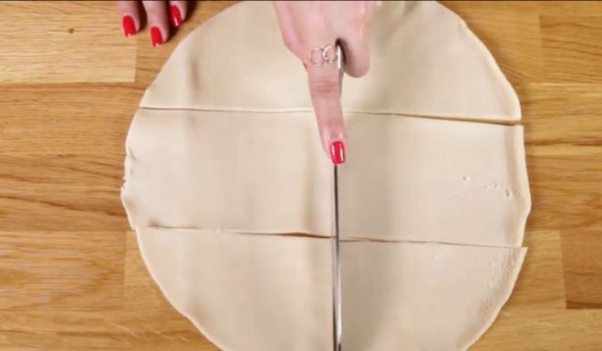 To begin, prepare your mashed potatoes however you see fit and set it aside for later. The recipe below uses plain mashed potatoes, but feel free to add garlic, chives, or cheese to yours. Then, roll out your pie crust on a large flat surface and cut it into six pieces.