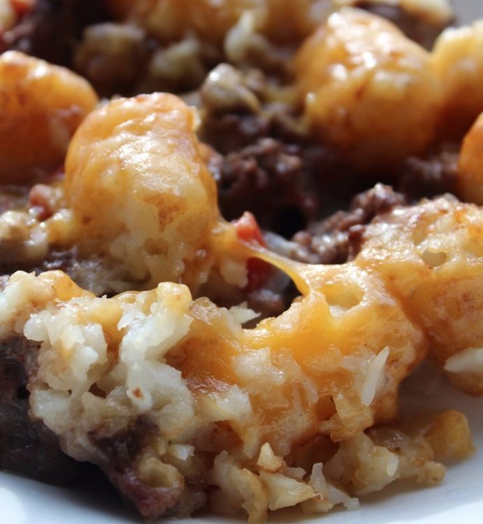 But if beef is calling your name, how about a tater tot casserole with ground beef, diced tomatoes and mild green chilies, and cheese? This recipe from