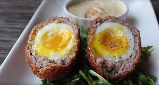 Eggs and sausage are a perfect match for breakfast, but sometimes it's nice to switch up your regular schedule with something new. Chef John from the YouTube channel Food Wishes shared a recipe for Scotch eggs on his website. Scotch eggs originated from England and feature soft boiled eggs that have been breaded and deep fried.