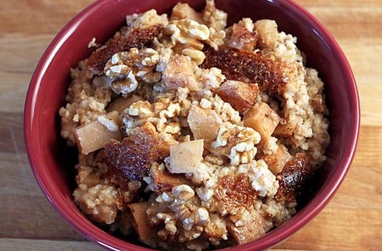 This fabulously healthful, steel-cut oat version from theyummylife.com includes flaxseed, brown sugar, and nuts for texture and taste. The flavor is an absolute winner, but do heed the author's comments about cooking times if you know that your crock pot cooks on the quick side.