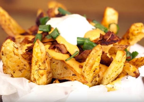 YouTube channel S'wonderfully Vegan presents this recipe for yummy "bacon cheese fries" as the first installment of its Pub Food series. Watch the video for visual instructions and be ready to make even your carnivore (okay, omnivore) friends drool!