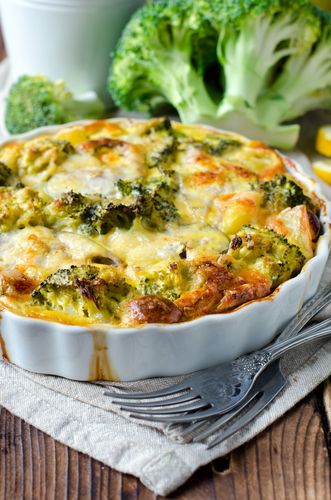 Add the broccoli, chicken, rice, salt, and pepper and stir to combine.