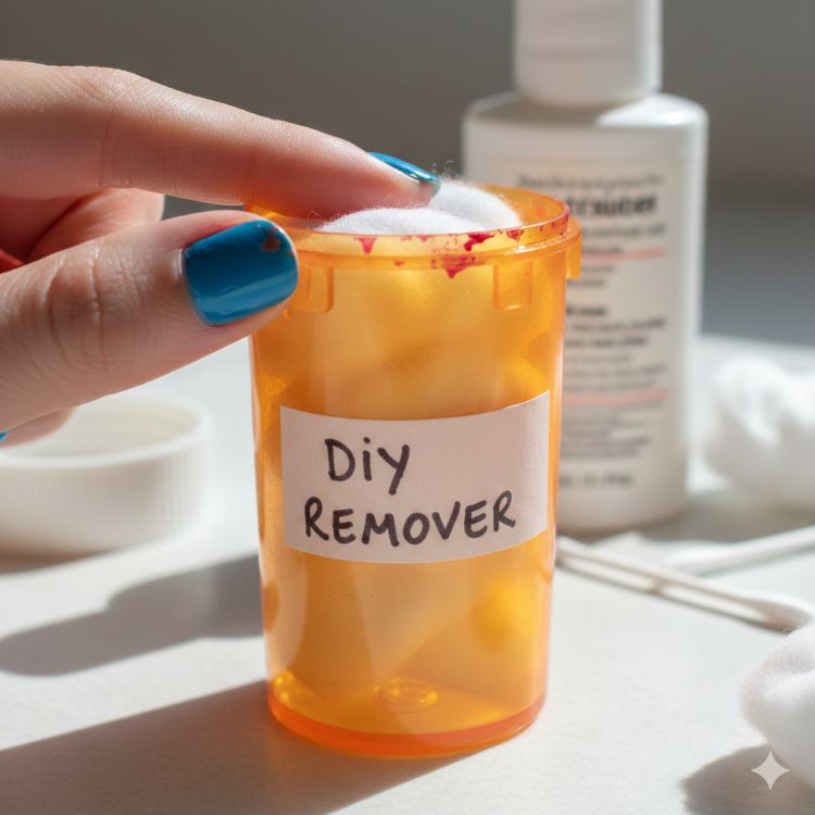 Nowadays you can buy those handy but expensive nail polish remover pods. You stick your finger in the remover, wiggle it around a little, and before you know it all your polish is off. Well, you can make one out of an old pill bottle by filling it with cotton balls and remover -- that's it!