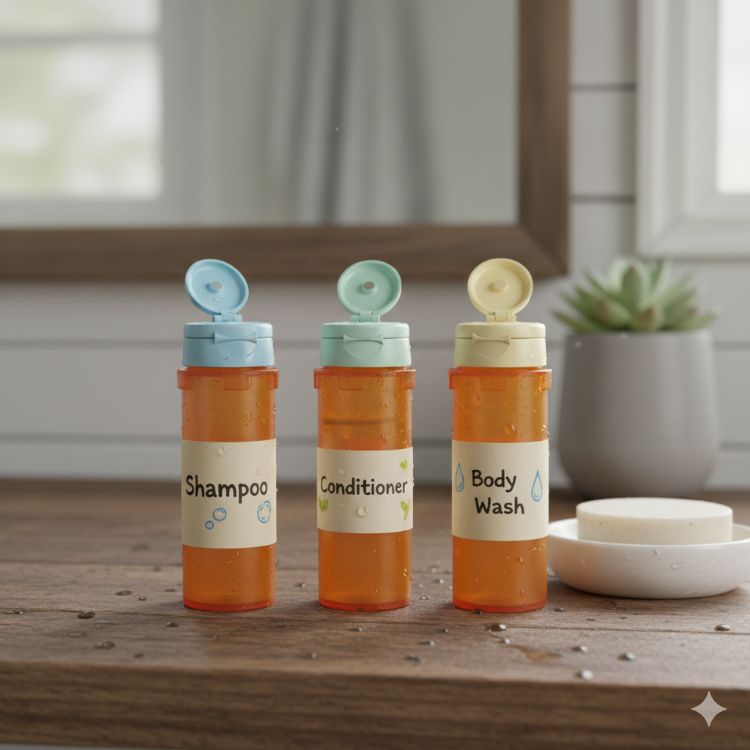 Why spend money on travel-size shampoo, conditioner, or body wash when you already have the perfect tiny container at home? A clean pill bottle is leak-resistant, compact, and easy to toss into a gym bag or carry-on.