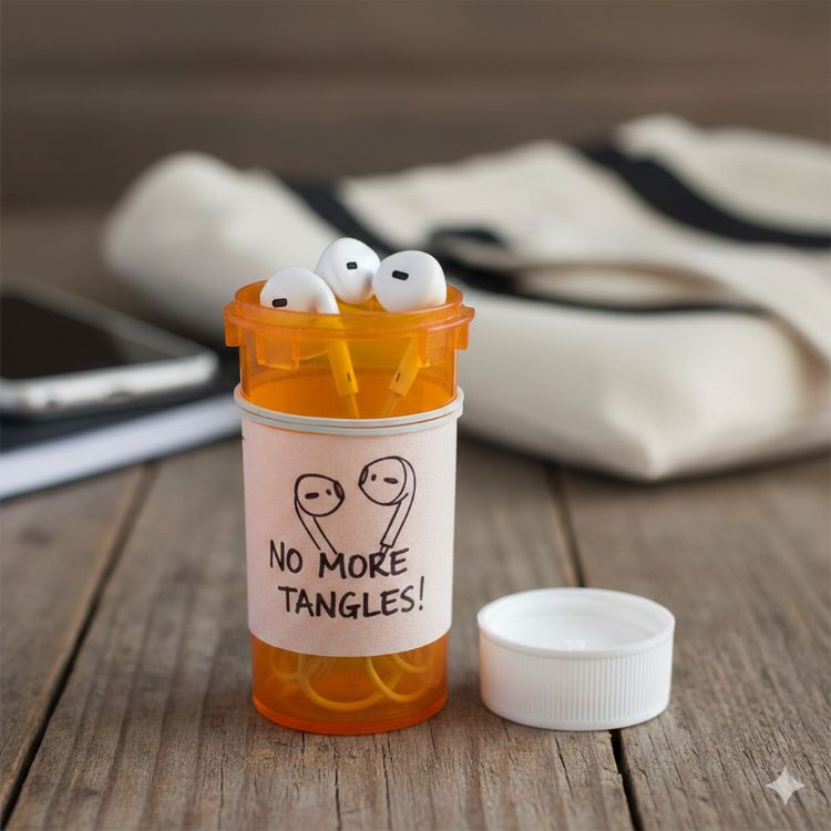 One thing we can all agree on, without a doubt, is how annoying it is to untangle earbuds. Losing them in a tangled mess at the bottom of your bag comes at a close second. Instead, knot them up and throw them in a pill bottle. The chords stay neat, and you'll always be able to find them.