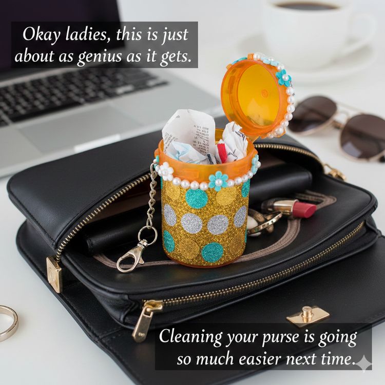 Okay ladies, this is just about as genius as it gets. Decorate an old pill bottle then tossed it in her purse to collect things like old receipts, wrappers, and anything else that tends to just end up floating around. Cleaning your purse is going to be so much easier next time.