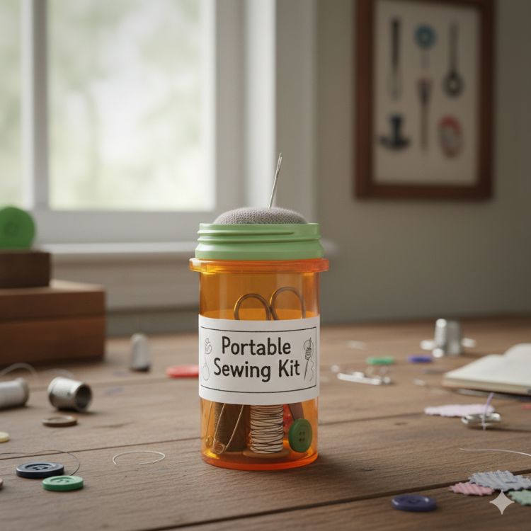 If you’re constantly snagging a sleeve or popping off a button at the worst possible moment, this one’s a lifesaver. Tuck a small spool of thread, a couple of needles, and an extra button into a pill bottle and keep it in your purse, car, or desk drawer.
