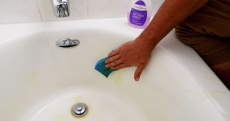 The soap scum ring in your bathtub can be hard to scrub off. You buy endless products with scrubbing bubbles, but did you know the solution may be already hiding in your bathroom? You can simply wipe it away with a mixture of nail polish remover and water.