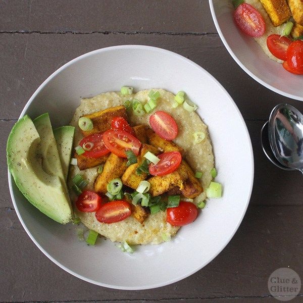 This breakfast takes a bit to prep, but the flavors make the extra effort worth it. This recipe serves four. Top the base of tofu, grits, and avocado with your favorite veggies (try onions, tomato, or pepper). Get the full recipe for this delish dish from Glue and Glitter.