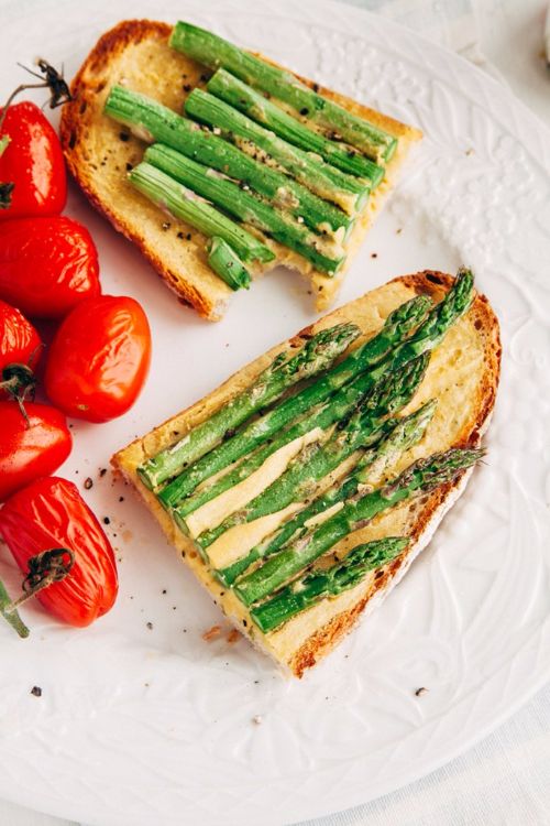 Despite having "egg" in the name, this dish is entirely egg free (dairy free too!). Seasoned with nutritional yeast and garlic powder, this toasty bread serves as the perfect base for some asparagus spears. The recipe serves two and takes about 15 minutes to prep. Get the full recipe from Wallflower Kitchen.