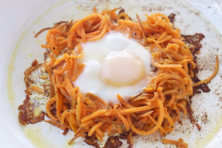 You've never had eggs like this for breakfast before! This healthier twist on the traditional chicken in a basket (aka egg in a hole, aka one-eyed jack) uses sweet potato in place of a slice of bread. The sweet and savory mix is the perfect way to start out your morning. Check out the full recipe from Eat the Gains.