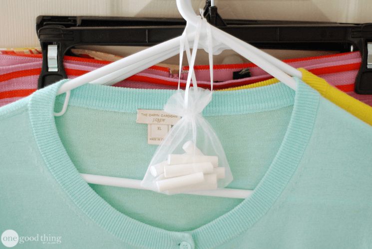 Because your closet is a closed space in your home, moisture can build up. Reduce moisture and protect your clothes by hanging a bundle of chalk from a decorative hook. The chalk absorbs moisture and costs as little as a dollar a box.