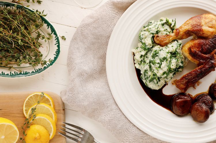 Mashed potatoes are a comfort food favorite side dish, and those on a low-carb diet don't need to eschew them entirely. Subbing mild cauliflower in for the potatoes makes just as delicious a side dish. The recipe below pairs it with spinach for flecks of green color and tons of vitamins. Get the full recipe here.