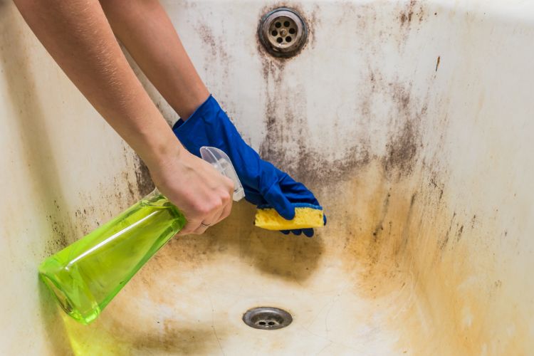 If you're dealing with a tub that's covered in rust spots or lime deposits, then you're going to have to step up your game. Put 1 tablespoon of borax into a spray bottle, followed by 2 cups of vinegar. Top it off with 1 teaspoon of dish soap and shake until everything is combined. Spray this combination all over the tub, especially on the stained areas and let it set for at least half an hour. When you come back to it, use a sponge to scrub everything clean.