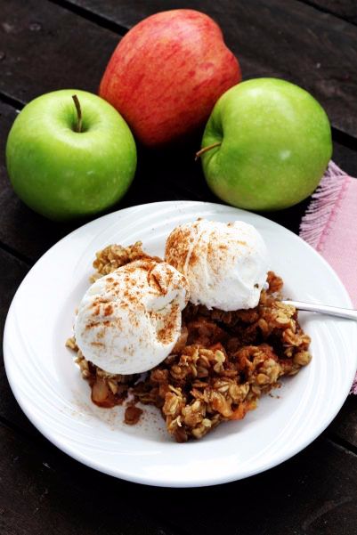 There aren’t many desserts more simple and comforting than a delicious apple crisp. In just a few minutes, you can delight those taste buds without busting the diet too terribly. That is, unless you top it with ice cream. But I won’t tell anyone if you don’t.