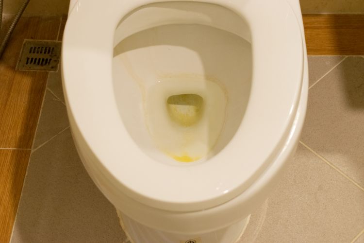 That dark ring in your toilet isn't necessarily a stain in the porcelain. It may be where hard water has created a limescale ring. The traditional cleaning method uses a pumice stone to erase the offensive ring, but you risk scratching the toilet and causing more staining. The easiest way to remove the hard water ring without damaging your toilet is to pull on a pair of gloves and use a small piece of drywall screen to scrub over the area with Barkeeper's Friend. Your toilet will look brand new again!
