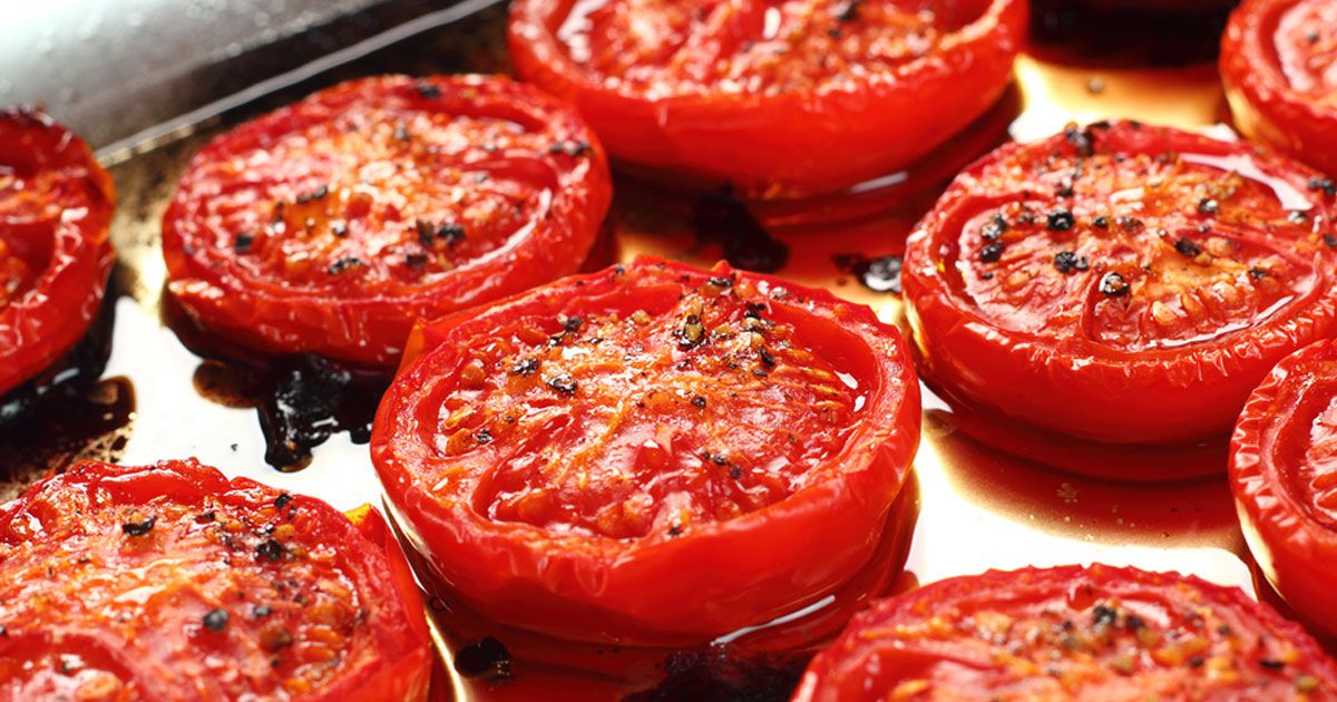 Save yourself the hassle and just purchase sun-dried tomatoes. They're similar to roasted tomatoes but have a very unique shape, taste, and texture. You can slice them thinly and toss them into salad, or you can cut them into big chunks and toss them with your favorite pasta—they're particularly great with pesto sauce. Or, you can even just pull them out of their jars and snack on them all on their own; this is a great idea for cheese boards or charcuterie platters.