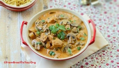 Stroganoff is traditionally made with beef, but this version is made with chicken and it's every bit as delicious as beef stroganoff! The sauce has white wine, sour cream, chicken broth, and tomato sauce in it... yummy!