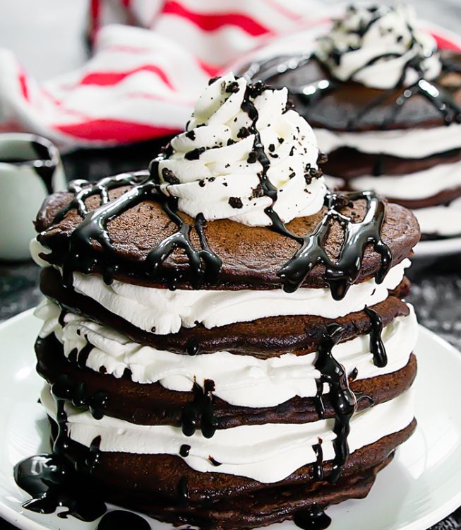 Add a little fun for the kids with this tasty treat. A cookie-and-cream pancake layered with rich whipped cream is sure to be gobbled up fast.