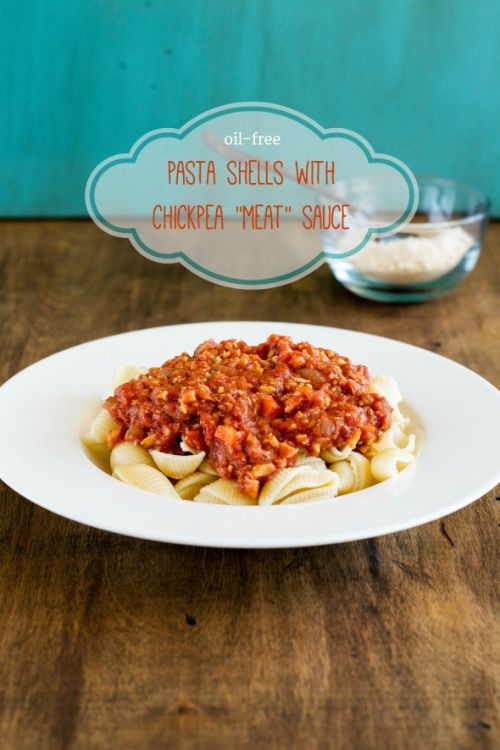 5. Pasta shells with chickpea "meat" sauce (h/t An Unrefined Vegan)