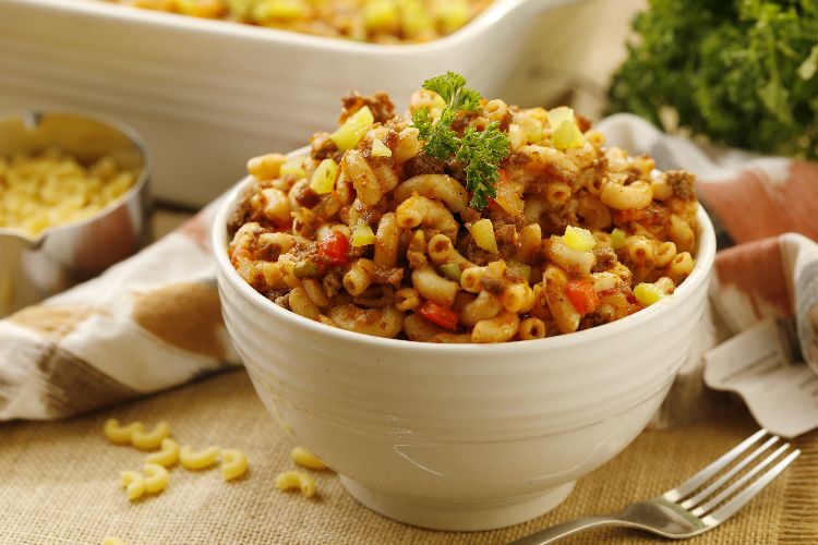 All of the favorites are here, including tender beef that's surrounded in a sweet and tangy sauce, and macaroni that steps in to take the place of the bun. And, even if it seems weird to you, I urge you to top it all off with pickles when this casserole comes out of the oven. They make all the difference when those tangy crunchy bites cut through the richness of the dish and balance everything out. And I guarantee you, kids and adults alike will be filling their plates with a second helping!