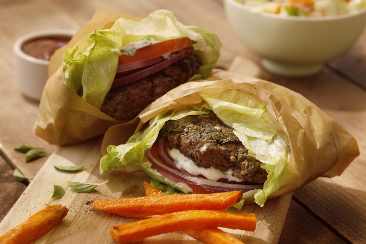 I love how these burgers sneak in a hearty dose of vegetables in a way that hardly anyone will notice. The spinach not only makes them good for you, but keeps them moist, too. Serve these wrapped up in lettuce leaves with whatever burger fixings you like and everyone will leave the table satisfied.