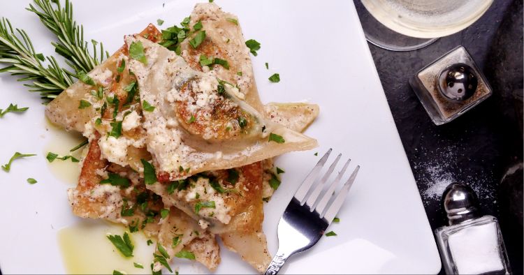 Reduce the heat to low and add the ricotta, feta, pepper, and nutmeg. Toss to combine. Season with additional salt if needed (the feta will already add quite a bit of salt). Remove the filling from the stovetop and allow to cool completely.