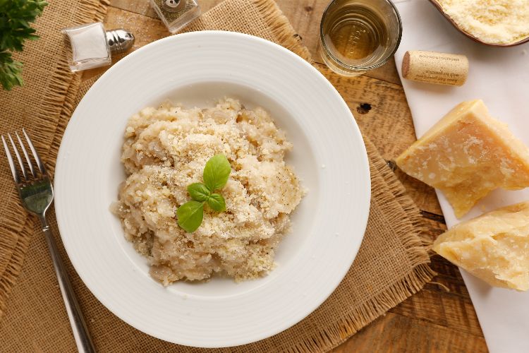 A garlic and Parmesan risotto is one of the most basic types of this dish. Once you master it, you can play around with the ingredients however you choose, but the recipe that follows is how most risottos start. Luckily, because this dish is made entirely in the slow cooker, there's not a lot to master.