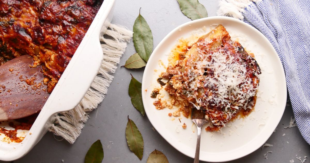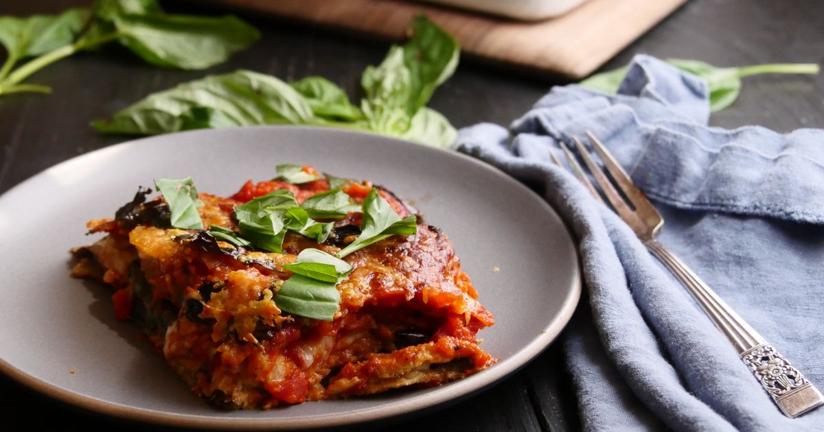 Transforming an eggplant into "noodles" is easy with a mandoline or wide vegetable peeler. Layer those noodles with spicy or sweet Italian sausage, onions, garlic, fresh spinach, ricotta and mozzarella. Douse it generously with pureed roasted red peppers from a jar for a super-easy and quick lasagna. Get the recipe here.