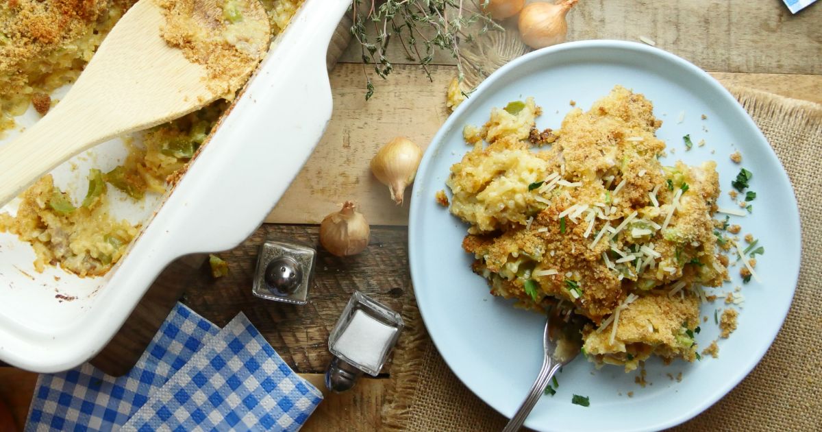 Potatoes and sausage go together like bacon and eggs because salty/smoky and slightly spicy make subtle flavors blossom. Don't be put off by the canned mushroom soup in the recipe; it adds the perfect richness to the sauce. If you can find bulk sausage at the store, you'll save the step of removing the sausage from its casings. Get the recipe here.
