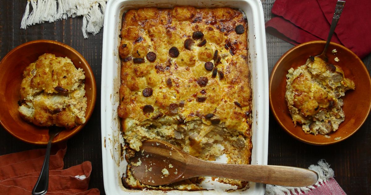 Stuff a sausage? It might sound impossible, but the stuffing is what makes this dish so special. Gently sautéed onions, garlic and mushrooms combined with perfectly crisped, chopped bacon are lightly pressed into the center of chubby Italian sausages cut halfway through lengthwise before baking. The browned melted cheddar on top keeps everything in place. Get the recipe here.