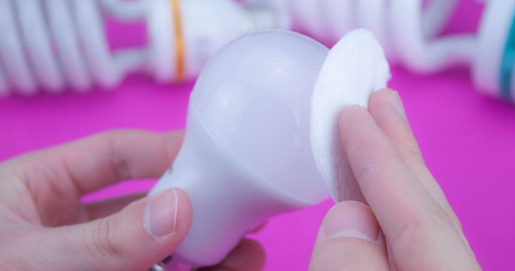 Home lighting fixtures are prone to dust buildup. Over time, dust that accumulates on the walls, ceiling fans and air vents drops down and finds itself stuck to light bulbs. To keep lights bright and the home warmly lit, dab a little rubbing alcohol onto a cotton pad and run it over the surface of the light bulbs, as shown in the picture above. This method also provides a streak-free shine for a brighter bulb effect.