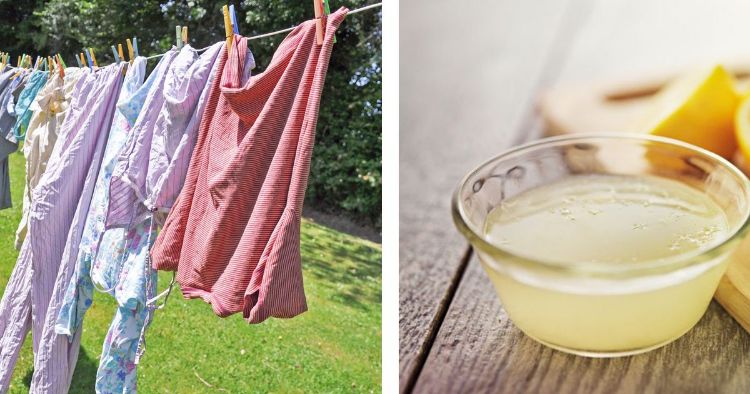Some days you just don't have time to run your favorite outfit through an entire laundry cycle before you need to wear it again. Or it's dry-clean only, but you have to wear it tomorrow. If the clothes still look clean but smell a little funky, you can make a spray from 1 tablespoon lemon juice and 1 cup water. Spray the item all over and then hang it up to dry.