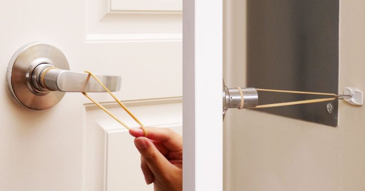 Prevent young children from closing or locking their bedroom doors. Place a Command wire hook on a wall behind a doorknob. Wrap one end of the rubber band around the doorknob, then place the opposite end of the rubber band on the wire hook. The rubber band will keep the door ajar.