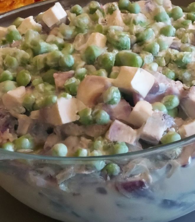 I remember the first time I tried Creamy Pea Salad at a potluck party. I wasn't sure what to expect, but after one bite, I was hooked. The creamy dressing, crunchy vegetables, and the savory taste of cheddar cheese complemented the sweet peas perfectly. I immediately asked my friend for the recipe and have been making it ever since. This salad has become a staple in my household, and I always get compliments whenever I serve it. If you're looking for a simple yet delicious dish that's perfect for any occasion, then you need to try Creamy Pea Salad with Cubed Cheddar Cheese. Trust me, you won't be disappointed.