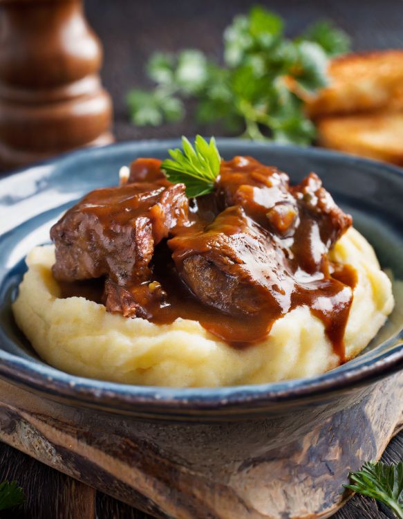 8. Stir the beef tips gently to mix the gravy and serve hot.