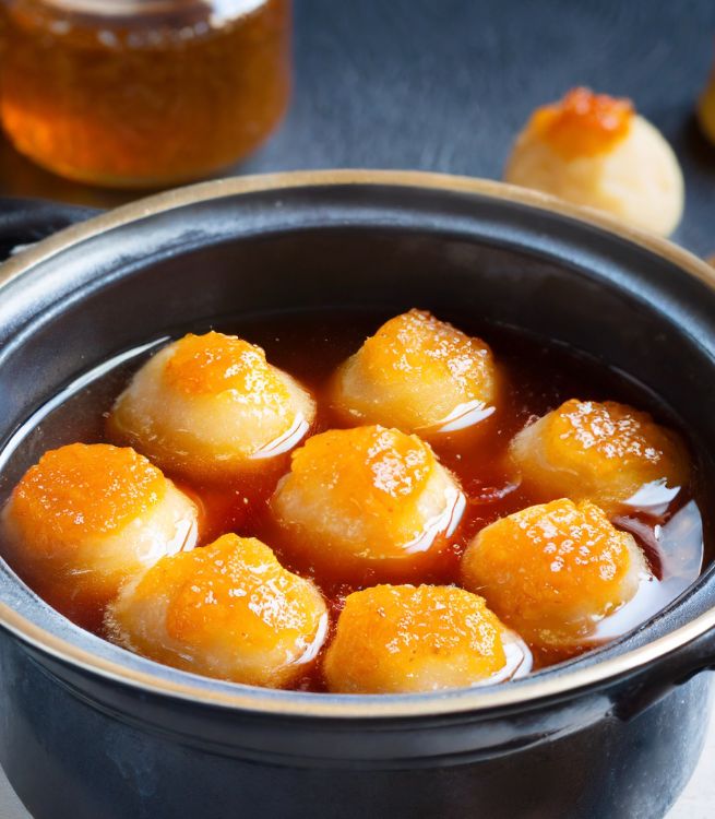 5. Gently place the dough balls into the syrup mixture.