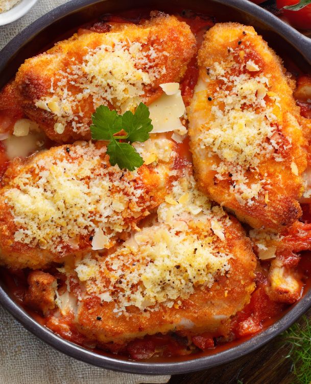 Picture this: golden brown breaded chicken breasts, smothered in tangy marinara sauce, and crowned with a melty cheese blend. Each bite reveals a symphony of textures and flavors that will leave you craving more. One particular evening, when I presented this dish to my closest friends, it captivated their taste buds and transformed the ordinary dinner into an unforgettable gathering. The conversation buzzed with excitement as they praised the delectable combination of crispy, tender chicken and the perfect harmony of tomatoes and ooey-gooey cheese. It was then that I realized the transformative power of this Chicken Parmesan Bake - it has the ability to create lasting memories and bring people together through a shared love for incredible food.