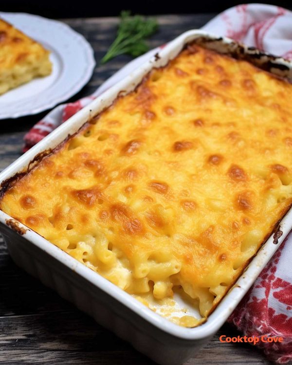 Allow it to cool slightly before serving. Enjoy your delicious 5 Cheese Macaroni Bake!
