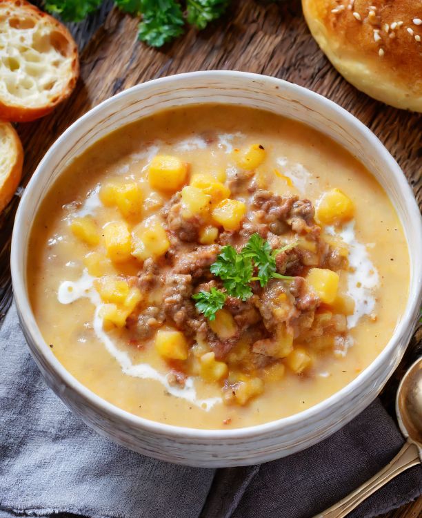 When serving Creamy Cheeseburger Soup, it pairs wonderfully with crusty bread or dinner rolls. The bread can be used for dipping into the soup, allowing you to savor every delicious bite. Another excellent option is to serve this soup with a side salad, such as a crisp Caesar salad or a simple mixed greens salad. The freshness of the salad provides a nice contrast to the rich and cheesy soup, creating a well-balanced meal. Additionally, a side of crispy French fries or sweet potato fries can also be a delightful accompaniment, adding a touch of indulgence to the overall dining experience.